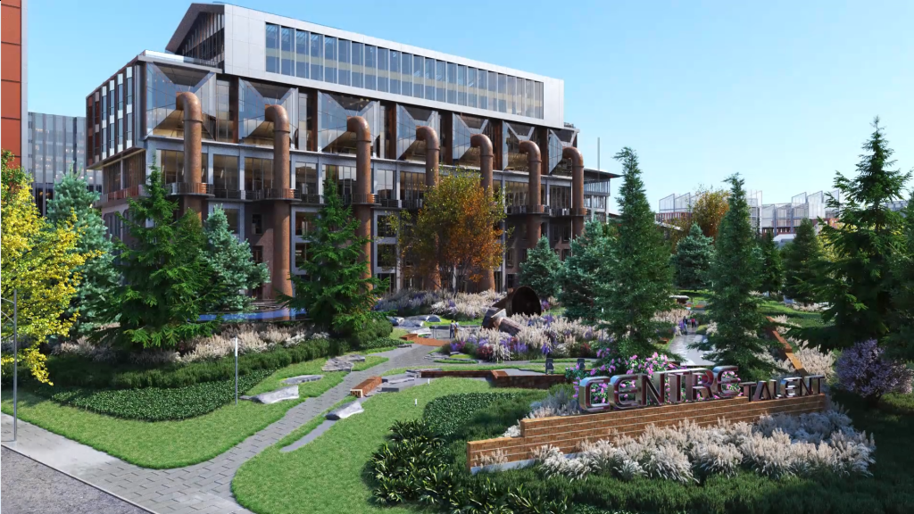 After extensive research and discussions, Rongshi Plaza has abandoned 1,000 square meters of business space, opting to create a multifunctional “cultural living room” on the fourth floor of Building 1. This space integrates a museum, visitor center, and exhibition area, allowing the building and culture to coexist and form a “public urban space” that fosters social and cultural exchanges.From our perspective, Rongshi Plaza revitalizes the old architecture with a symbiotic model, showcasing a blend of “hardcore industrial style and modern minimalist aesthetics.” This enhances the project’s recognition and architectural identity, as evidenced by its four Gold Awards at the 2025 MUSE Design Awards. It is set to become a new “wild photography studio” for social media influencers.A Green Urban Oasis with Micro-Vacation Feel.Rongshi Plaza creates a green natural ecosystem and a city oasis with a sense of micro-vacation. When designing its aesthetic spaces, the project emphasizes an immersive “natural ecological” experience. The 2,500-square-meter open Northeast Plaza connects the commercial area and the central plaza, combined with landmark buildings and a 1,500-square-meter pocket park, creating a forest-like relaxing vibe.In this fusion of urban hustle and natural tranquility, Rongshi Plaza builds a 10,000-square-meter multifunctional LIVE space in the central plaza, where “sparks” and “snowflakes” elements symbolize the industrial furnace and the ice and snow Olympic legacy, creating a third space for micro-vacations in the city.