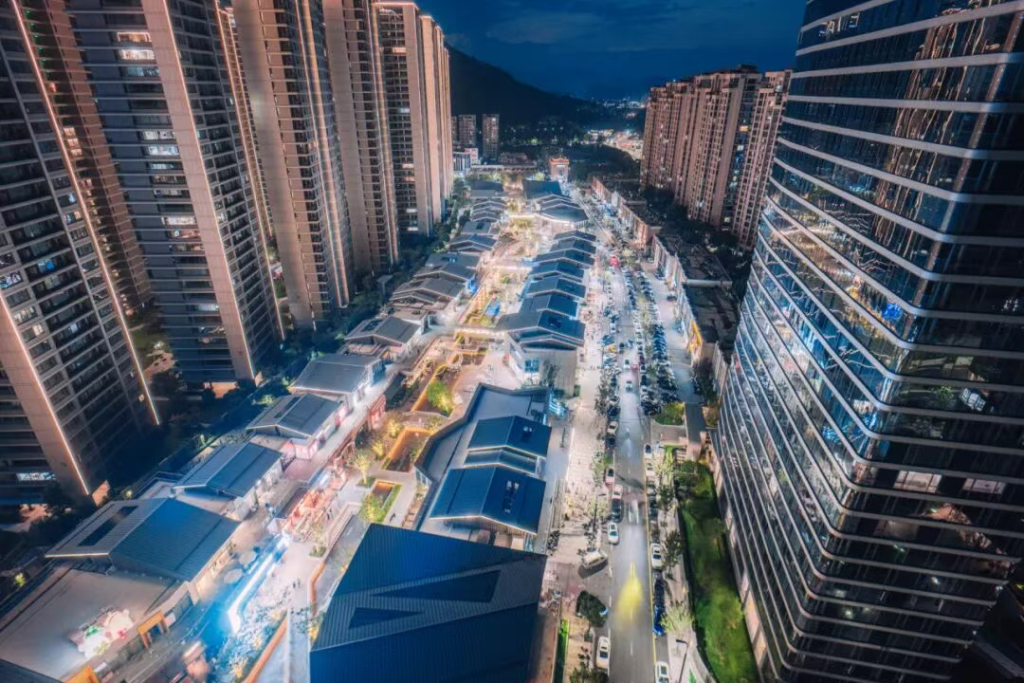 The second phase features new luxury brands, cutting-edge fashion, and tech products, as well as a large cultural space that includes a museum, immersive theater, and digital art center.The “BAY TO LIVE” concept has been launched, emphasizing luxury, exploration, and art, creating a high-end lifestyle ecosystem that connects global and local influences. With an expansive range of offerings, the mall aims to redefine the city’s retail and cultural landscape while introducing experiences such as exclusive pop-up events, immersive art exhibitions, and interactive activities.Hangzhou Fuyang Qinwang Shui Street.On September 30, Hangzhou Fuyang’s first-phase commercial project, the Qinwang Shui Street, officially opened. Developed by China Jinmao in collaboration with Hangzhou Fuyang City Construction Group, this 43,000-square-meter shopping street integrates water-based aesthetics, first stores, and cultural IPs. The complex is designed to blend shopping, dining, entertainment, and art seamlessly, forming a true “waterfront lifestyle” destination for the local community.With its new Chinese-style architecture and themed scenic spots such as the “Listening to the River from the Railing” and the “Wuyue Opera Stage,” the street brings to life the beauty of Hangzhou’s water towns, offering a dynamic environment that evolves from day to night.